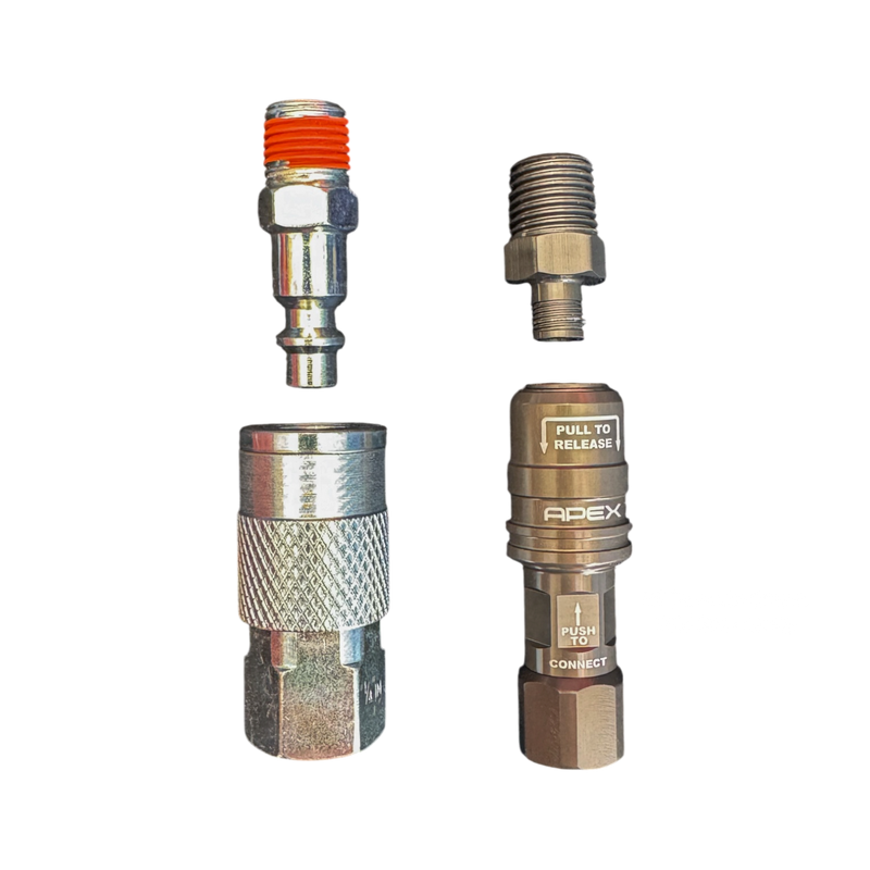 Ditch the bulky standard quick coupler and switch to the Compact Quick Coupler, designed specifically for the APEX High Flow Push-On Chuck. This lightweight, space-saving fitting makes it easy to quickly connect and disconnect accessories—without sacrificing performance.